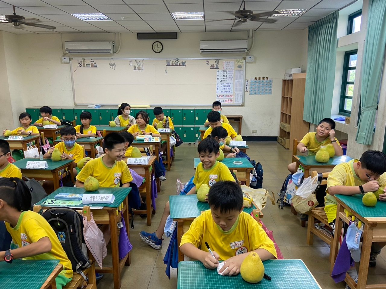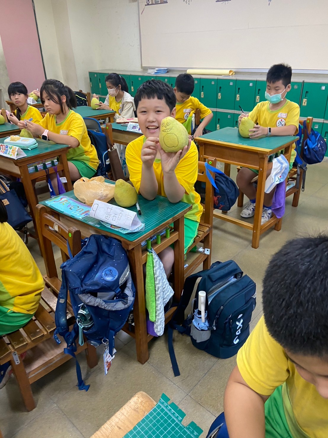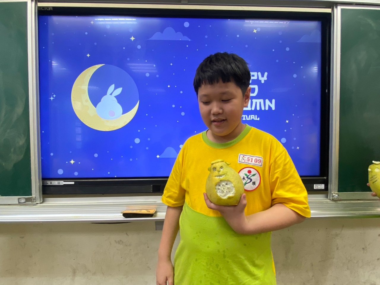 配合中秋節課程,大家一起將柚子變成了龍貓!