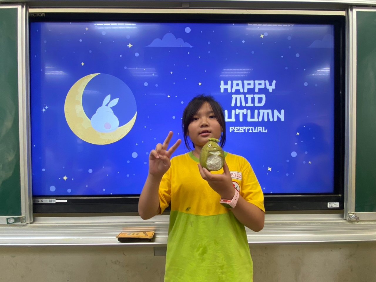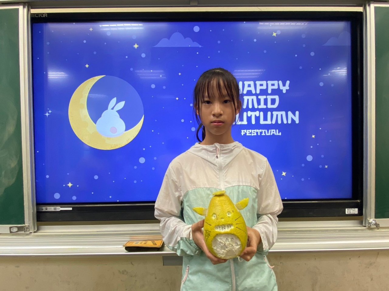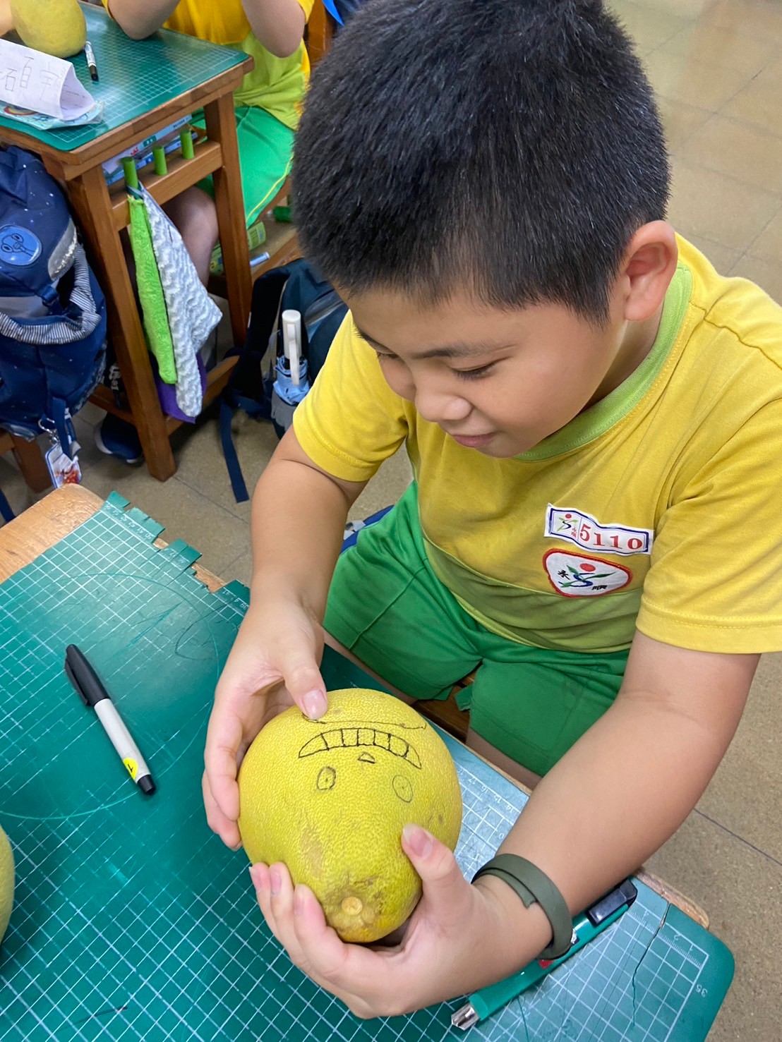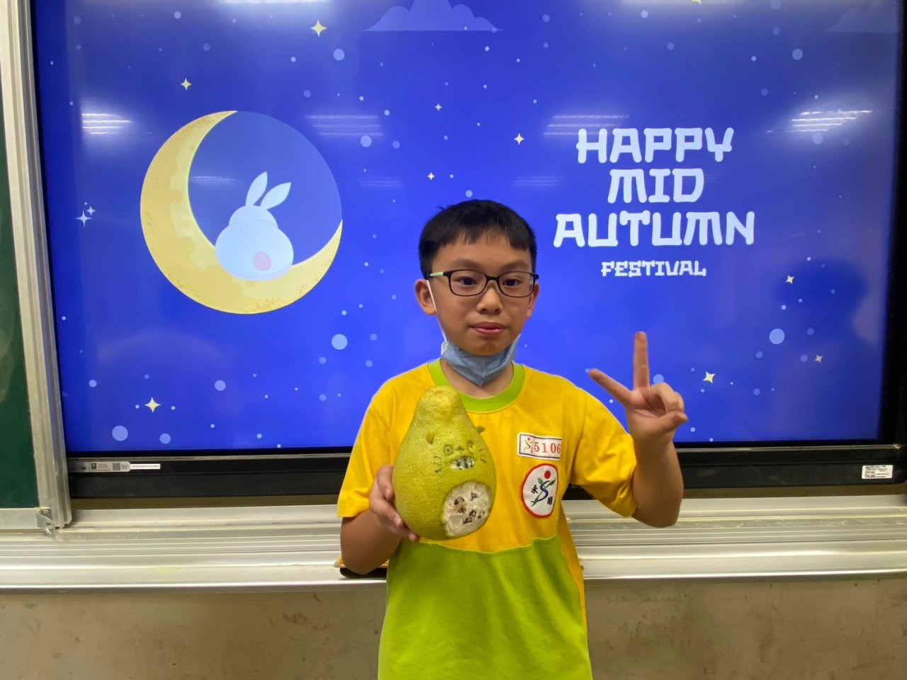 配合中秋節課程,大家一起將柚子變成了龍貓!