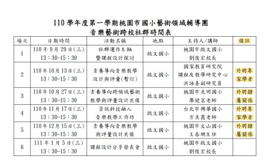 110 學年度第一學期國教輔導團藝術領域辦理 「音樂 藝術-素養導向音樂教學設計與評量」跨校社群工作坊。
