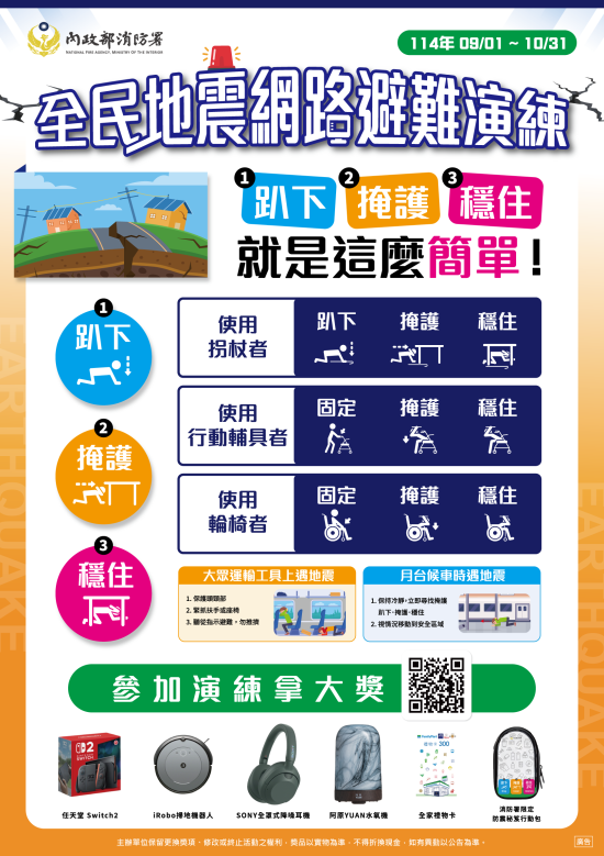 1、全民地震網路避難動作演練抽獎活動。