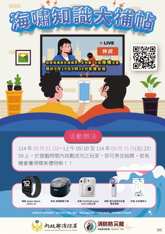 3、防災遊戲-海嘯知識大補帖抽獎活動。